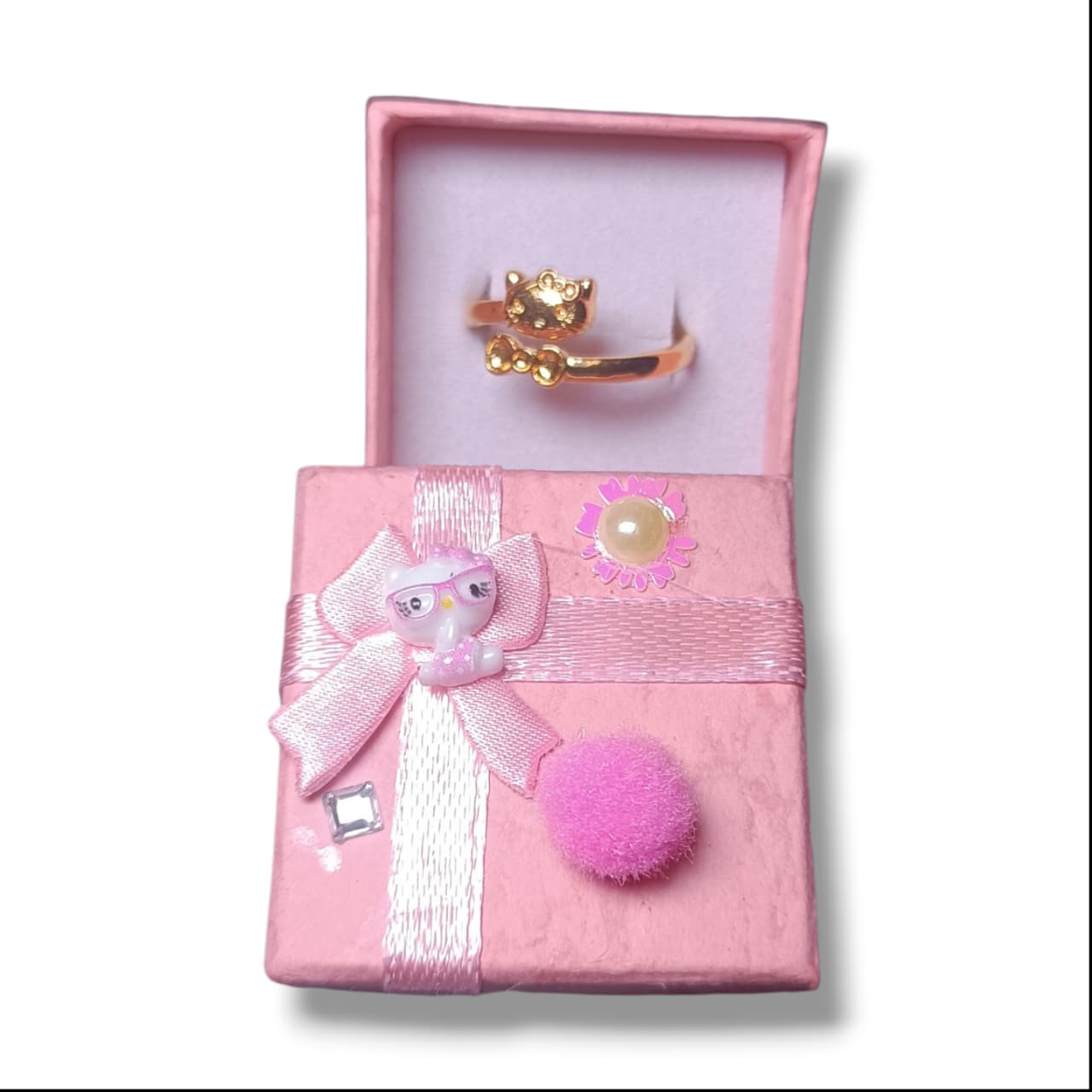 Dale un toque dulce y kawaii a tu estilo con este hermoso anillo inspirado en Hello Kitty 💖. Su diseño delicado en tono dorado destaca por su brillo y detalles encantadores, perfecto para complementar cualquier outfit.
