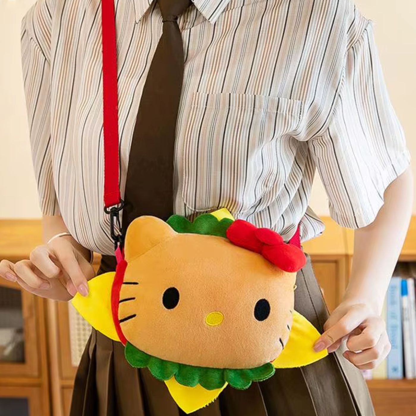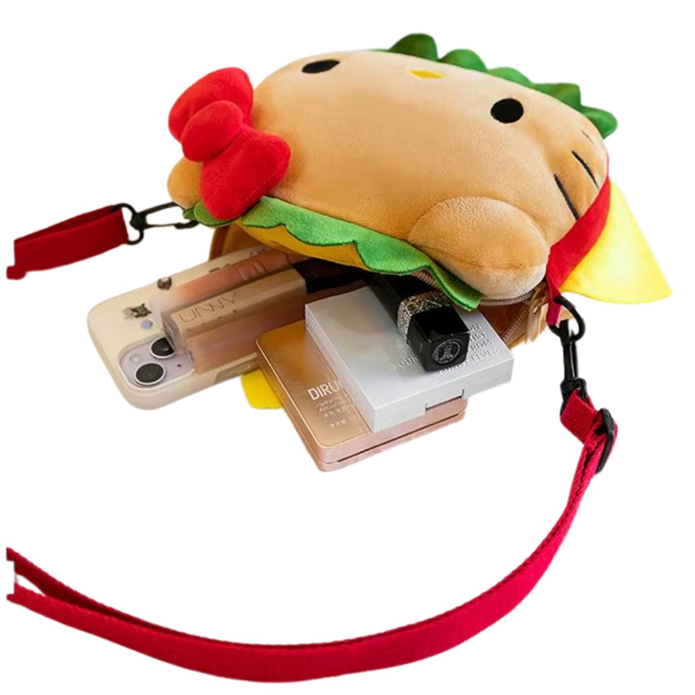 - Este bolsito tiene un diseño original y divertido, simulando una hamburguesa, con el toque inconfundible de Hello Kitty.