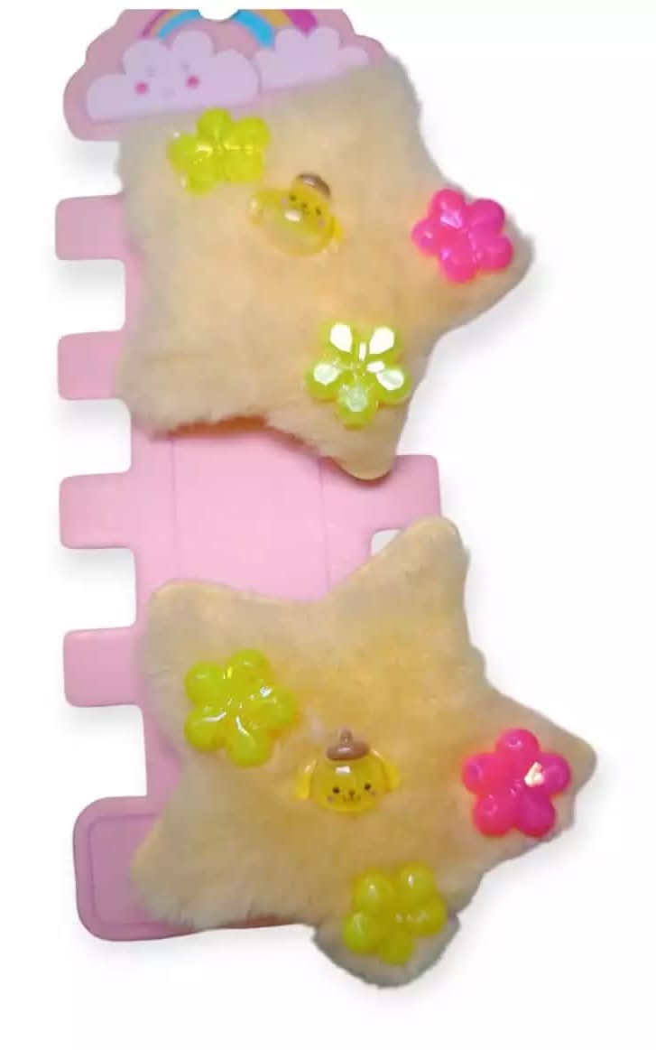Pinches de felpa peluche 3D de Pompompurin pack de 2 unidades largo 10 centímetros aproximadamente, diseño y color igual que en las fotografías.
