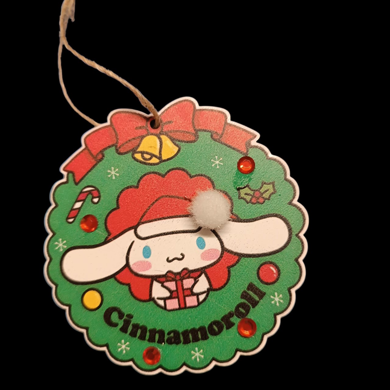 Hermoso colgante Cinnamoroll de madera 3D, de 9.5 cm con destellos de brillitos