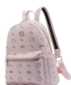 Hello Kitty exclusiva Mochila de piel sintetica rosada modelo Lujo, con bolsillo frontal .