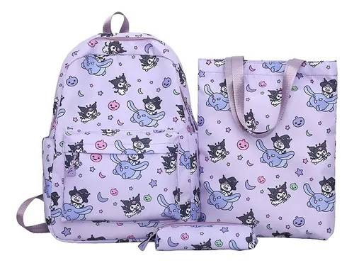 Set de mochila, lonchera y estuche Kuromi y sus amigos puedes tener a tu personaje favorito en esta hermosa mochila Kuromi.