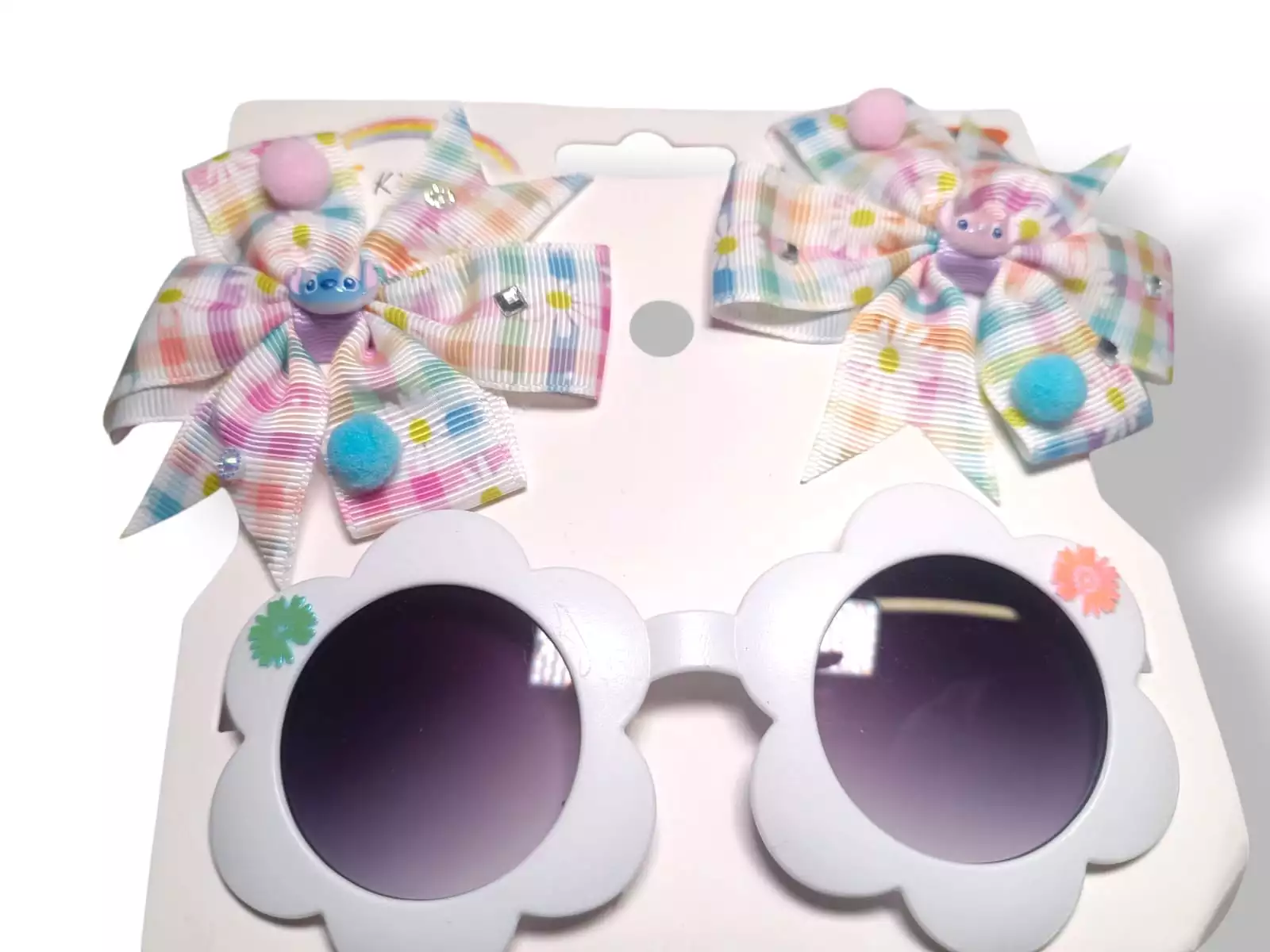 Set de 3 Piezas – Pinches y Lentes de Stitch & Angel: Estilo, Color y Diversión